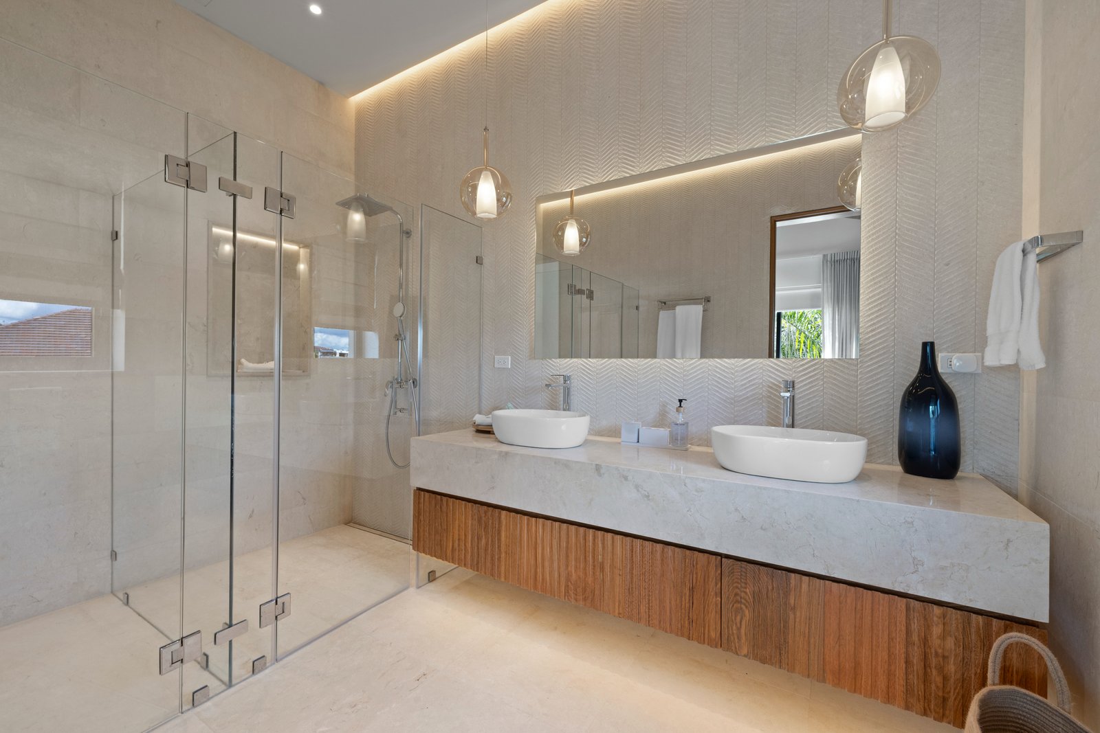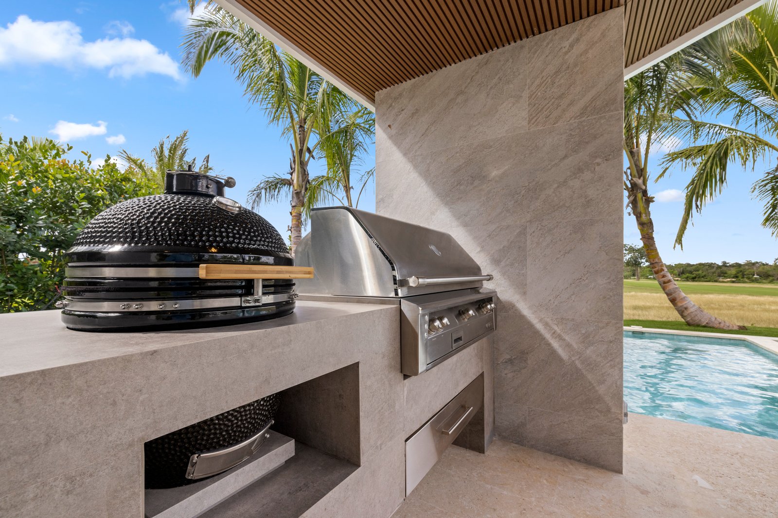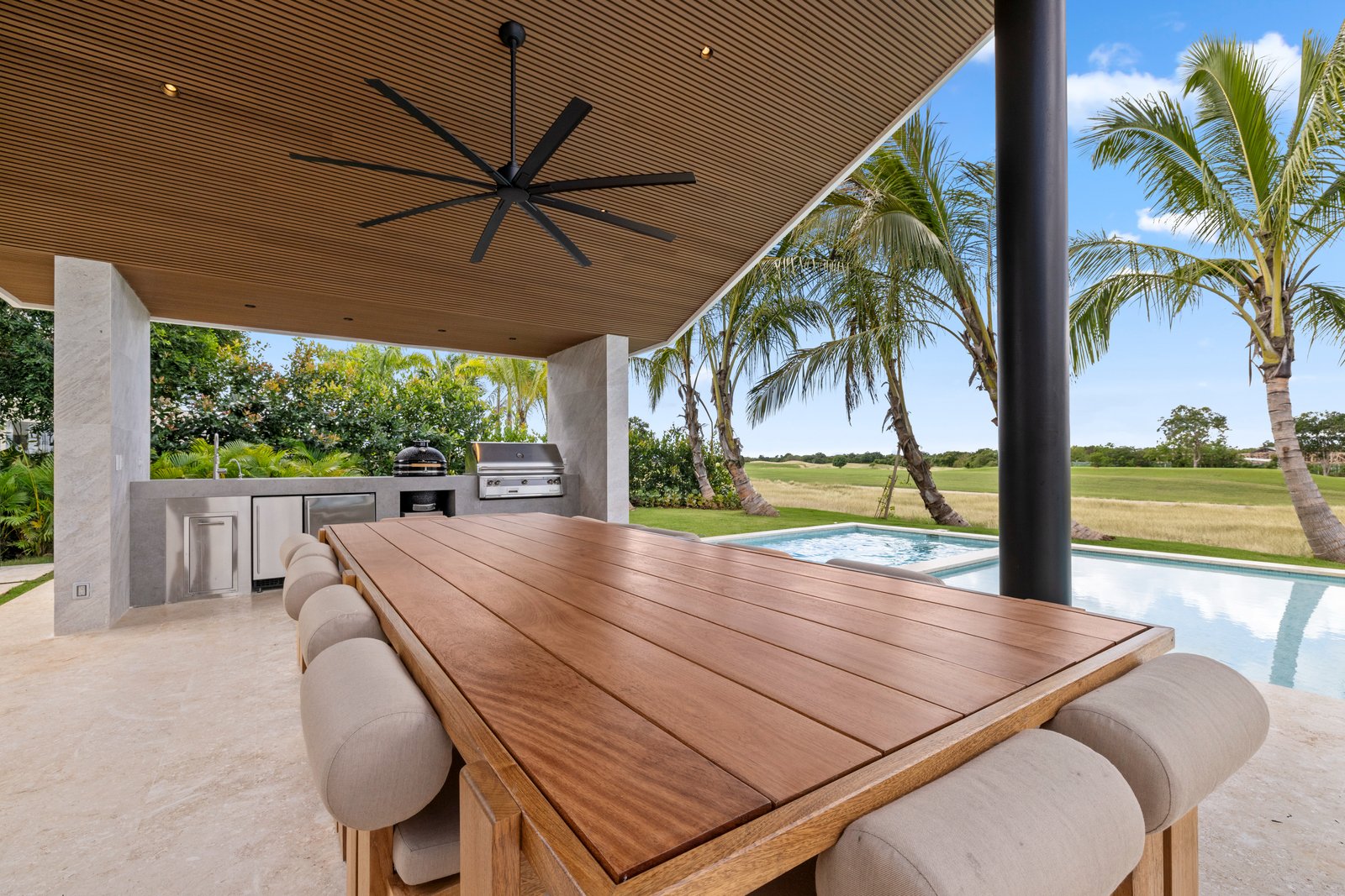 Brand new construction – 6 bedroom two-story villa overlooking Dye Fore with staff (housekeeper, chef, butler), pool, heated jacuzzi, billiard/ping pong table, fire pit, home gym, kid’s play room, two living rooms, outdoor kitchen, ample seating space with occupancy for 12 adult guests maximum. Located in new neighborhood of Vista Lagos near kid’s outdoor park and basketball courts close to Altos de Chavón.
